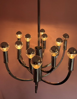 Vintage-Pendelleuchte aus Chrom, 12 Lichtpunkte.