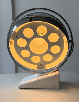 Vintage Space Age Tischlampe mit Marmorsockel und drehbarem Chrom-Metallschirm