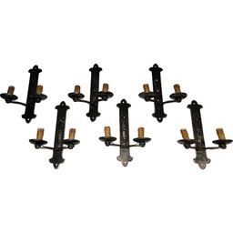 Satz von 6 schmiedeeisernen Wandleuchtern, Frankreich 1950