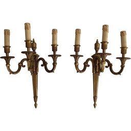 Paar Wandlampen aus Bronze mit 3 Armen, 1950