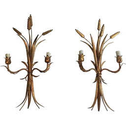 Paar vergoldete Wandlampen aus Metall, 1970Paar vergoldete Wandlampen aus Metall, 1970