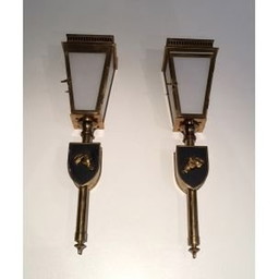 Paar Pferde-Wandlampen aus Messing und Glas, 1950