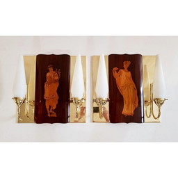 Paar Wandlampen aus Messing und Opalin von Max Ingrand, 1940