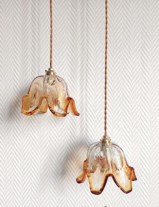 Duo-Tulpen-Pendelleuchte aus Muranoglas, 1970