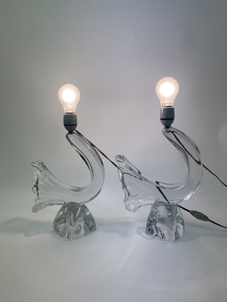 Paar große orientalische Tischlampen aus Messing mit Steinen