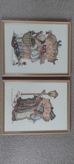 Goldfarbener Rahmen (stehend in Holzhalterung) mit zwei präparierten (präparierten) Schmetterlingen