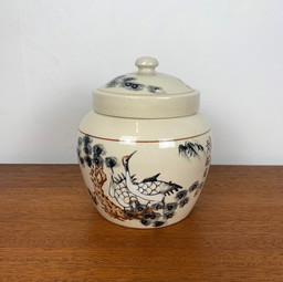 Tabakdose aus Keramik und schwarzem Skai, 1970