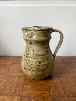 Antiker, handbemalter Steingutkrug Rotes und grünes Blumendekor – signiert ASM 0375