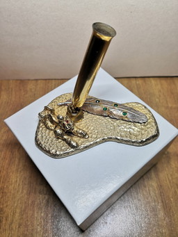 Skulptur Eule Brutalist Messing Und Achat 1970