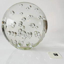 Vintage Glasbriefbeschwerer, klares Kristallglas, kontrollierte Bläschen, 9,5 cm