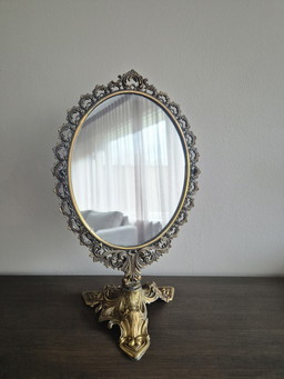 Goldener ovaler Spiegel mit geschliffener Kante, 1950er Jahre