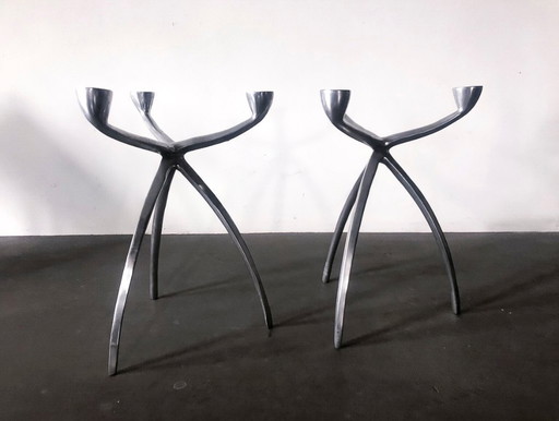 Lebensgroßer, dreiarmiger, stehender Burgkerzenständer aus Aluminium