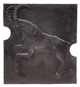 Ein Paar skulpturaler Feuerböcke aus Gusseisen mit gedrehten Köpfen, Frankreich