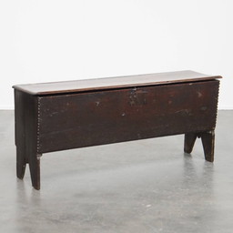 Kleine Vintage-Brandmalerei und bemalte Holzkiste