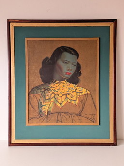 Vintage, handbemaltes Holztablett, 43 x 43 x 8 cm