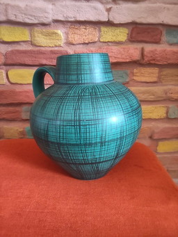 Großer, glasierter Steingutkrug, signiert, Zeitraum 1950-60