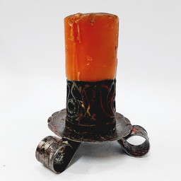 Alter handgefertigter Kerzenhalter aus Holz und Schmiedeeisen