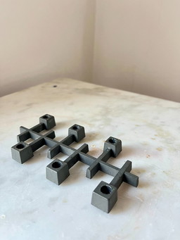 Brutalistischer Kerzenhalter, Metall und Holz, 20er Jahre