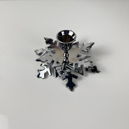 Silberner Schneeflocken-Kerzenhalter aus MetallSilberner Schneeflocken-Kerzenhalter aus Metall