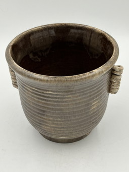 Brauner Blumentopf aus Steingut mit geripptem Blatteffekt, 1960/70