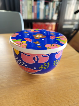 Chinesische Ingwerdose aus blau-weißem Porzellan mit Deckel.