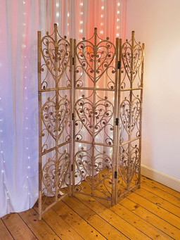 Vintage-Raumteiler aus Korbgeflecht / Herzmuster