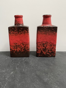 Bodo Mans & Bay Keramik Vase Vintage Nr. 70-25 orange & rot West Germany 1970s