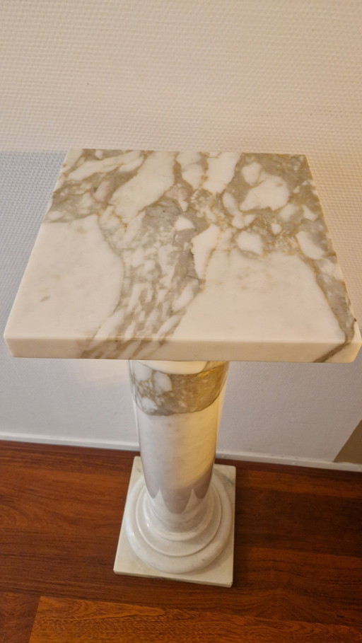 Zwei antike Säulen aus Alabaster und Holz auf Marmorplatten