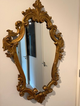 Antiker goldfarbener Holzspiegel