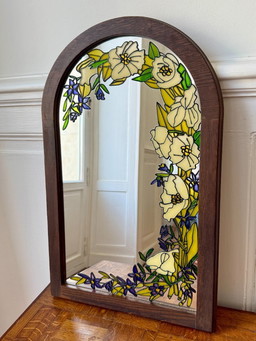 Kunstspiegel handbemalt, Harz, gelber Spiegel