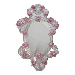 Art-Déco-Spiegel mit Blumendekoration in rosa Glaseinfassung