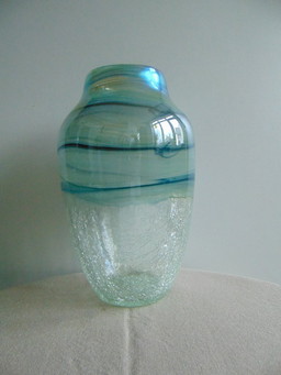 Große Vase Soliflora Vintage Paste Aus Glas Zweifarbig Blau - Weiß H 40 Cm