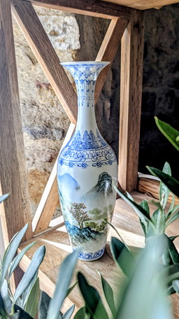 Vase boule faïence craquelé chinoiserie vintage années 60-80