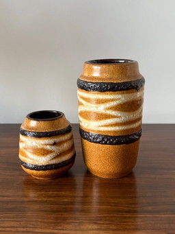 Große 54 cm Vase, Bodenvase, 1970er Jahre, Fettlava-Glasur, Zierdekor, Modell 100