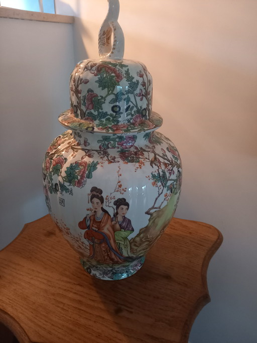 Set aus 3 Vintage-Vasen im orientalischen Stil, Balustervasen, Kanton-Porzellan, Porzellan
