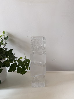 Glasvase Blockvase Walther Design Vase Solifleur Glas 70er Jahre