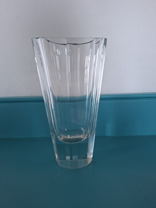 Schwere, geschwungene Kristallvase von Peill & Putzler. Girlandenmotiv.