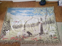 Vintage Handmade Needlepoint, Wandteppich Gobelin, Jungfrau Maria, Frau von Lourdes, katholische Ikonen, Holzrahmen