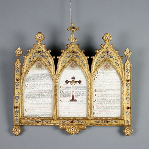 Vergoldete Altarkarte aus Bronze