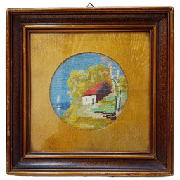 Wandkleed in Holzoptik, Vintage, Unikat, Textilkunstwerk, ursprünglich gestaltete Figuren aus festem Matador-Boorduurwerk