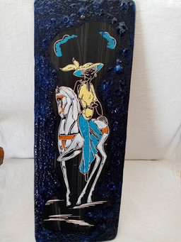 Keramik Vintage 1960'S Italienisch Keramik Wand Modernistic Flasche Motiv Fliese mit hölzernen Rahmen