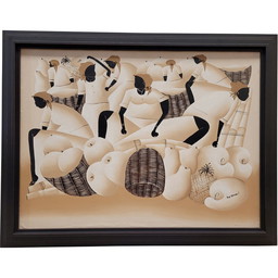 Vintage Acryl auf Leinwand Afrikanische Kunst von Ny'Bandoki, 1950er Jahre