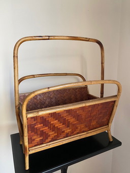 Vintage rotan en bamboe lectuurbak/krantenbak