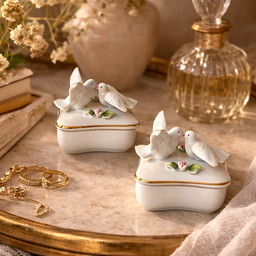Vintage Porzellan-Schmuckkästchen mit Taubenmotiv und Goldrand, 2er-Set, romantische Dekoration