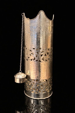 Antike, versilberte Vase / Bougeoir / Kerzenständer mit Cherub / Engel