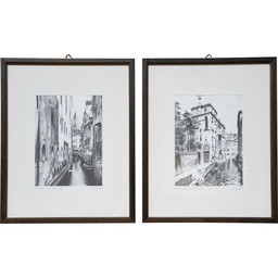 Paar alte Tuschebilder in Holz und Glas, 1980