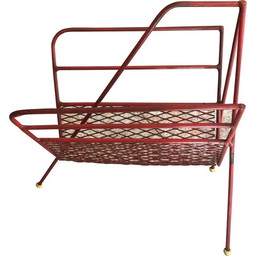 Rotes Zeitschriftenregal aus Metall, 1950Rotes Zeitschriftenregal aus Metall, 1950