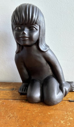 Keramische Statue, Skulptur Sitzendes Mädchen, Emiel Laskaris