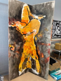 4x Acryl auf Leinwand und Papier, ungerahmt