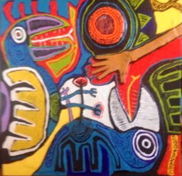 Gemalte Leinwand mit Zebras verziert. Werk eines zeitgenössischen Künstlers